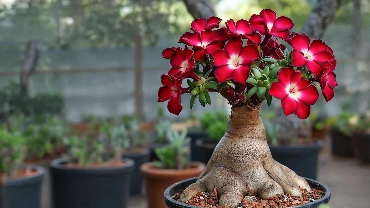 Our adeniums are carefully grafted and nurtured for stronger roots, richer colors, and long-lasting blooms.