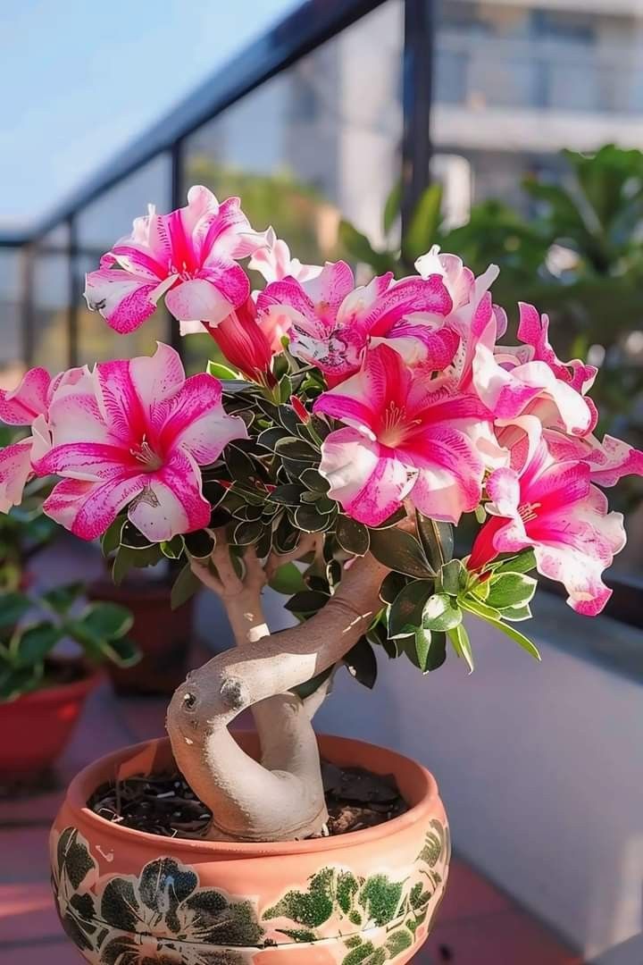 Adenium obesum is the best flowering plants in Dogbane family. Native to south of Sahara this desert plant can grow to 3.3-9.8 feet. Adenium is a sun lover therefore it needs 6 to 8 hours of day light for better growth.